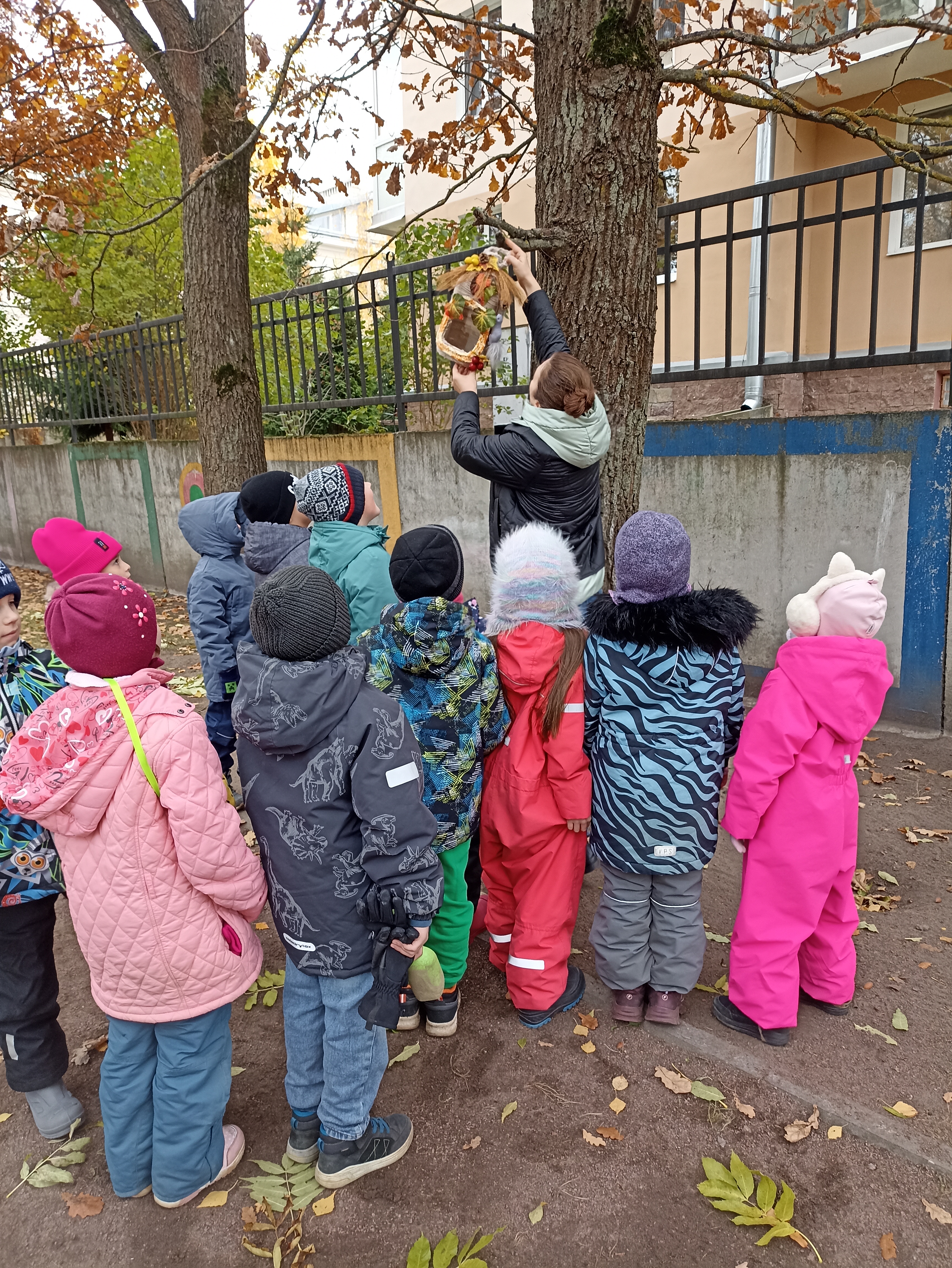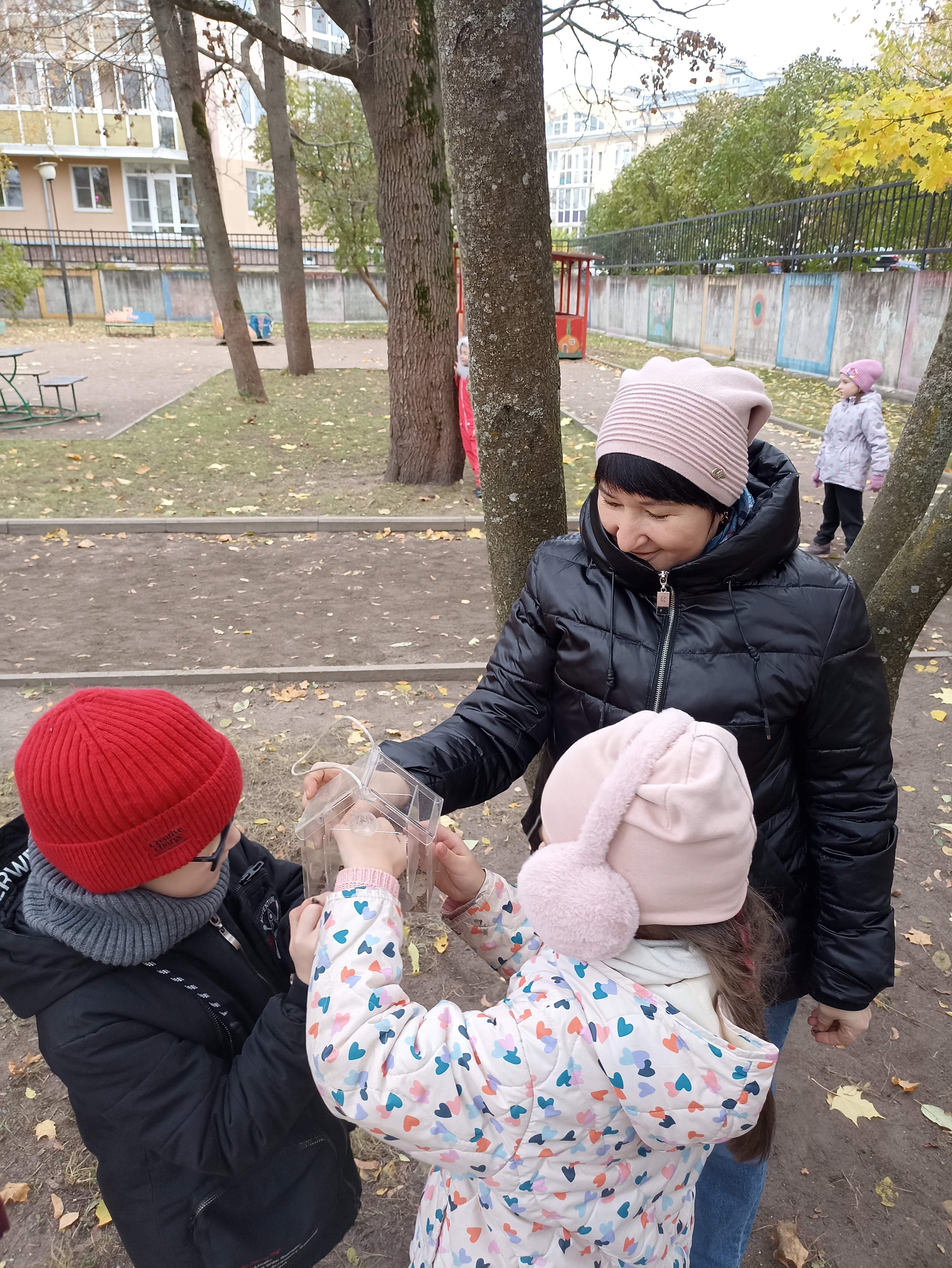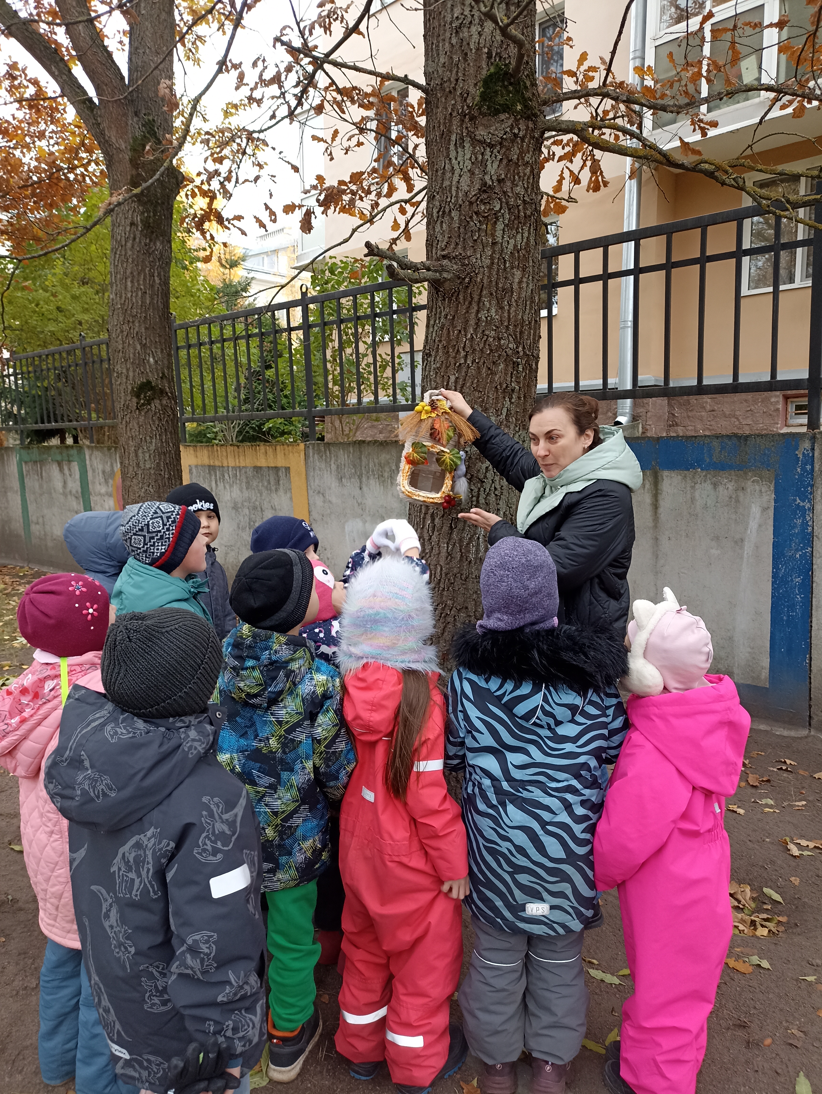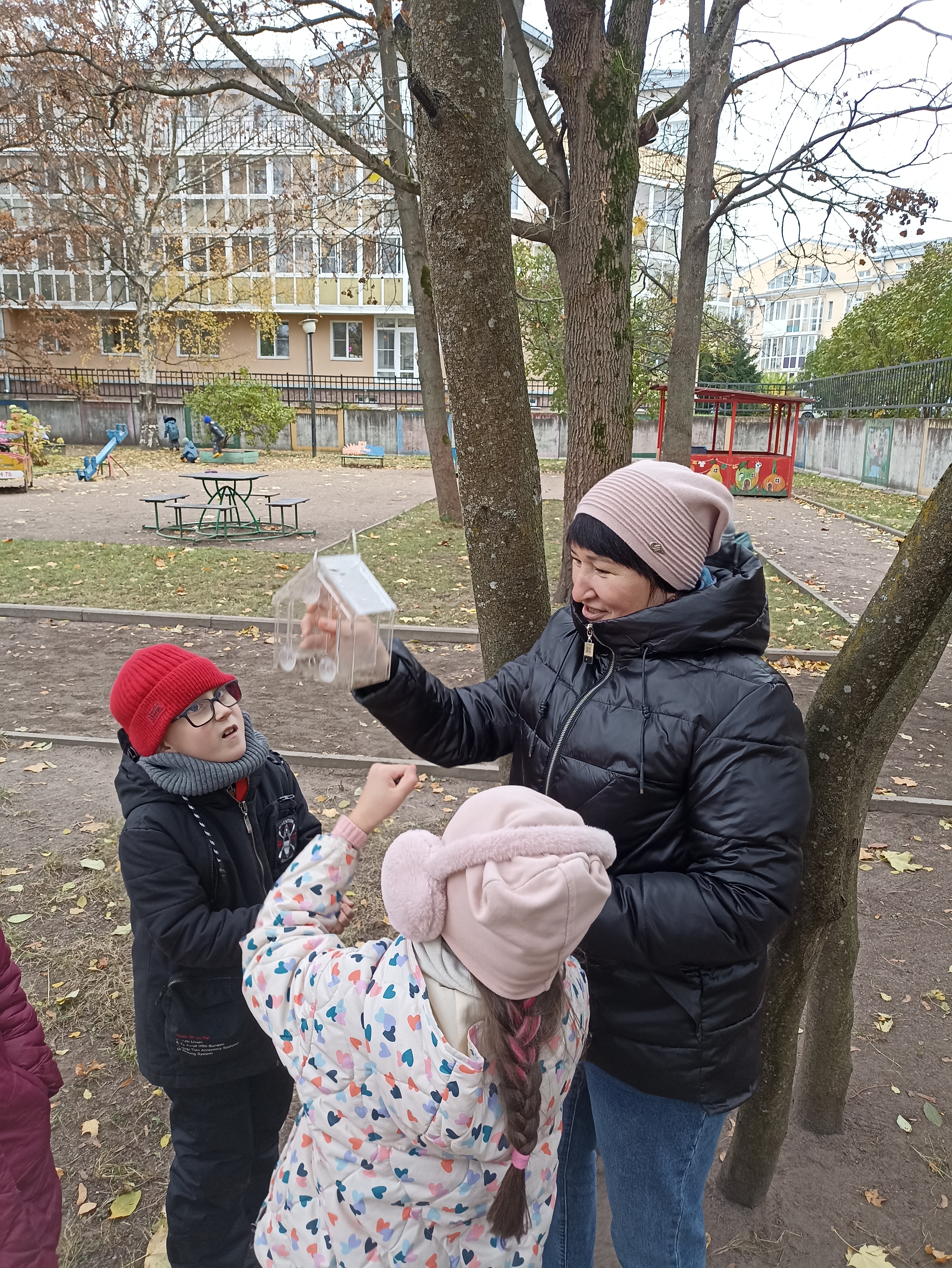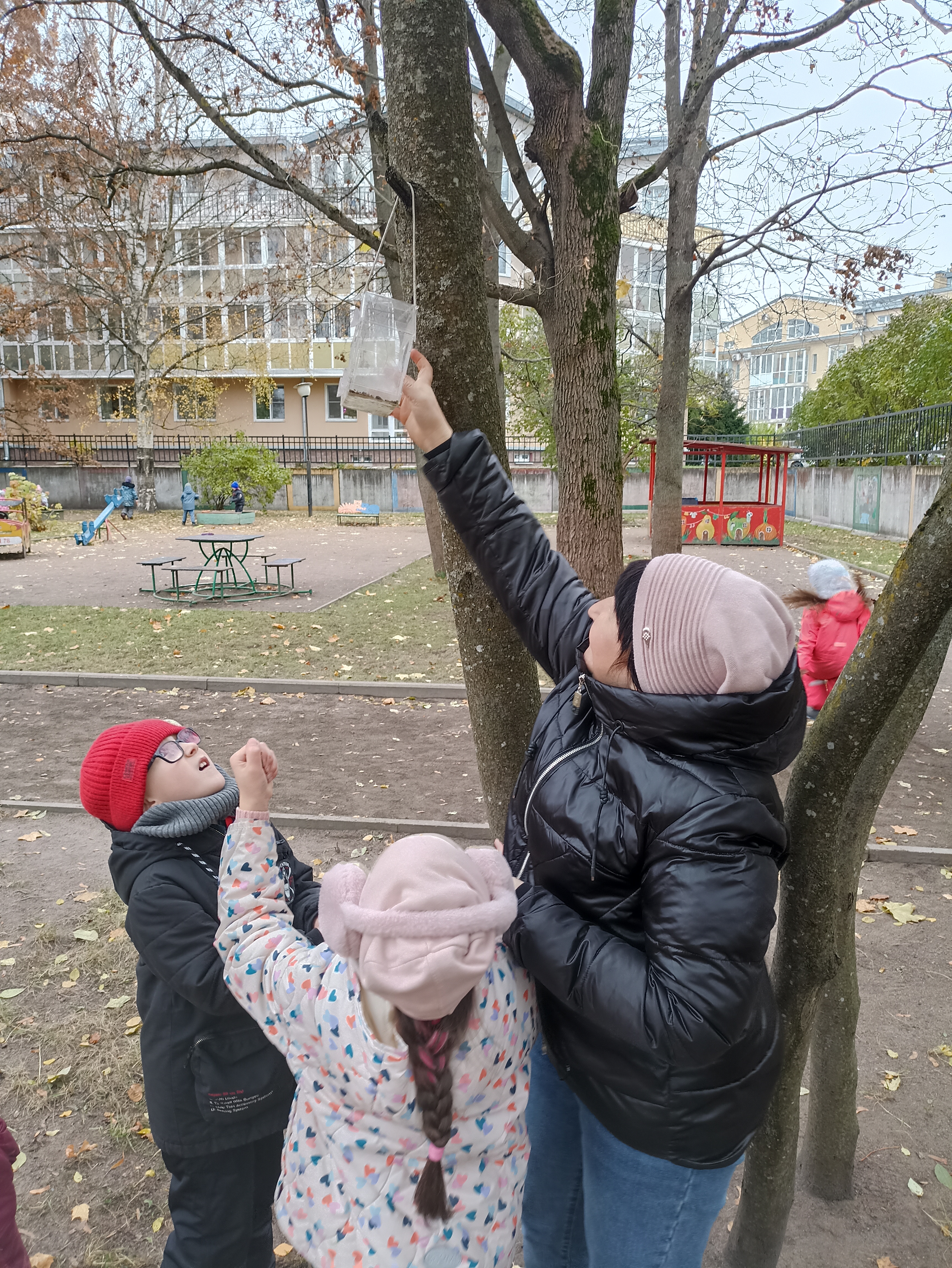 Подготовительные группы "Ромашка", " Золотой петушок", "Почемучки" приготовили множество кормушек и развесили их .