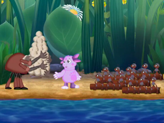 Муравьи упорно пытаются соорудить переправу через ручей, но бурный поток всякий раз уносит их строительные материалы. Что же делать? Находчивый Лунтик придумал: надо сделать навесной мост из паутины. Только это и остановит Паука Шнюка, который срочно сматывает всю свою паутину и собирается навсегда забросить свое основное занятие, потому что его сети всем мешают. Лунтик доказывает и Червяку, и Бабе Капе с Генералом Шером, и другим жителям леса, что паутина еще не раз сослужит им добрую службу. Язык: Русский
